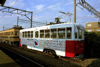 | 思鉄流はいつも行き当たりバッタリの出たとこ勝負。福井鉄道もすっかり元静岡鉄道の300 形や元名古屋地下鉄の600形が幅をきかせて、旧型車はほとんど予備車的存在だと思って いました。しかし、80形も200形も元気一杯で走りまわっていて、一安心。 しかも武生新の駅構内には、560形や120形、そして140形などが係留されていました。 560形は、市内線折り返し運転用に名鉄岐阜市内線からの転入車ですが、元をただせば北 陸鉄道金沢市内線の出身。現在は市内線折り返し運転は行われていないので、イベント用 などに使われているのでしょうか。 |