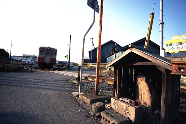 落日間近の踏み切り際にひっそりと、云われ知り得ぬ石仏。