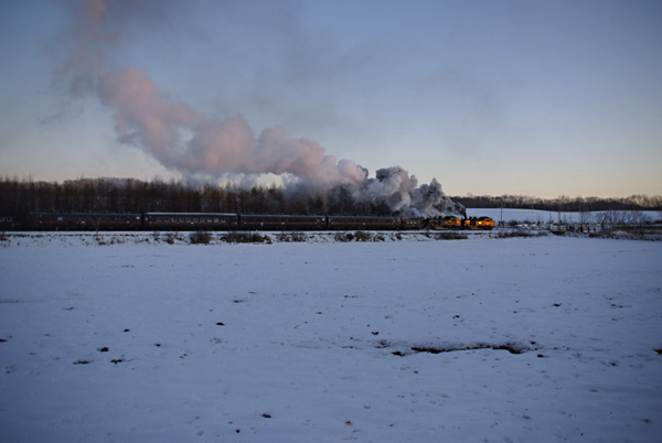 正面が拝める下りは昨日撮った陸橋から少し釧路よりの冬季通行禁止踏み切り際から。