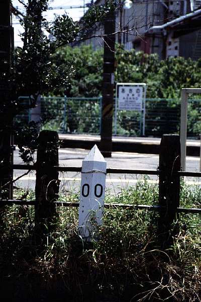 浅野にもホーム際の雑草の中に、0キロポストがあった。
