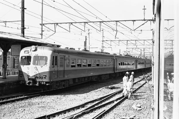 今月から始まった駅撮り探検団、前企画の引きずりか湘南電車の登場で幕開きです。 80系が出発して行くホームは花の東海道、越すに越されぬ大井川を渡った「金谷駅」 30数年前の光景でございます。「金谷」と言えば、蒸気機関車や懐かしい私鉄電車を 今でも楽しめる大井川鐵道との接続駅、鉄な方々には無くてはならない存在ですね。 そして、この頃の「金谷駅」には国鉄と大井川鐵道の間に渡り線があり、「奥大井」と 言う愛称の季節臨が静岡〜千頭間に2往復設定されていました。この写真は113系で 運転されたその「奥大井」が「金谷駅」で転線作業中に撮った、駅撮りならぬ車中撮り 写真で御座います。昔は「奥大井」みたいに国鉄からローカル私鉄への乗入列車や ローカル私鉄から国鉄への乗り入れ列車が各地に設定されていたけど、今じゃ皆無。 乗車しながらの転線作業なんて、普段はナカナカ体験できないシーンに廻り合う事も 無くなっちまいましたね。 東海道本線 金谷 1975-8 |