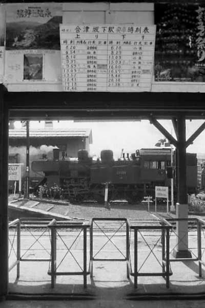 改札口を閉じていました。改札の向こうには、C11の貨物列車が煙を棚引かせ 姿が見えない。黙って入っちゃおうかなぁ?まずいかなぁ?そんな事考えながら シャッター押したのがこの一枚。改札口の向う側は構内踏み切りで線路を渡り スロープを伝いホームへ上がる、今で言うバリアフリー構造也。パイプで作った 「ディスカバージャパン」でしょうか?蒸気全廃間近の頃には、全国から検査の 只見線蒸気全廃まで最後のご奉公をしていたようです。この写真を撮ってから 奇跡のようですね。 只見線