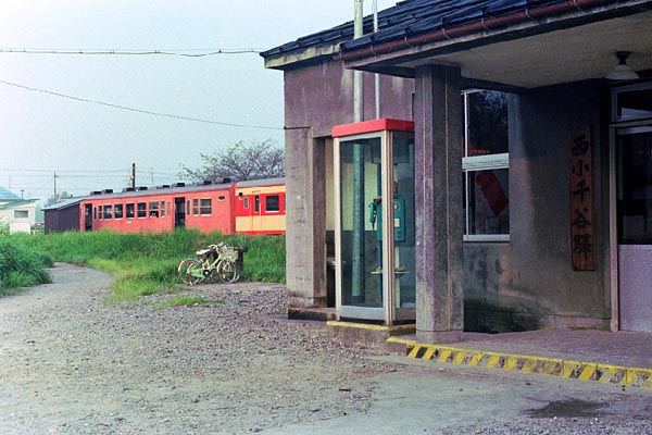 ナントモ存在感の薄い駅、それが今週登場の国鉄魚沼線「西小千谷」でございます。 駅前は未舗装、駅舎の壁面は薄汚れ草はボウボウ、人の気配は無し、当時ですら コンナ状態ですから、三セク変換なんて事は無く、すんなり第一次廃止路線の資格を クリアして国鉄時代の1984年4月1日に魚沼線もろとも過去帖。ところで、ホームに 停まっているのはタラコのキハ47と急行色の気動車はキハ58でしょうかね。70年代 後半とはいえ、気動車急行はマダマダ活躍していた時代なのに何で、一日数往復の 盲腸線でコキ使われていたのか。 魚沼線