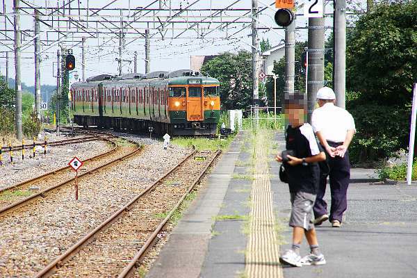 数年前の事、真夏のアッチィ日に何となく列車に乗りたくなり、何となく18切符を使い 何となく普通列車にを乗り継ぎ、何となく降りた駅が両毛線の岩舟でございました。 然したる目的も無く降りた岩船、無人の改札を抜けて見える風景は地方都市近郊の 典型的眺め、早い話観光客にゃ無縁の駅でした。さらに、唯一記録に収めたかった 駅舎は新しく建て直されておりました。いまさら真夏のトップライトの中徒歩鉄なんて やる気も起こらず、帰りに乗車する115系の進入を何となく撮ったのが、今回アップの 駅撮りでございます。しかし、「何となく」の所産で撮った湘南色115系も、近頃噂では 211系に置き換えと言う話が広まっております。と言う事はこの写真も時間が経てば、 「何となく」貴重なカットに成るかも知れませんね。 両毛線 岩舟 2009-8 Photo by 団長 |