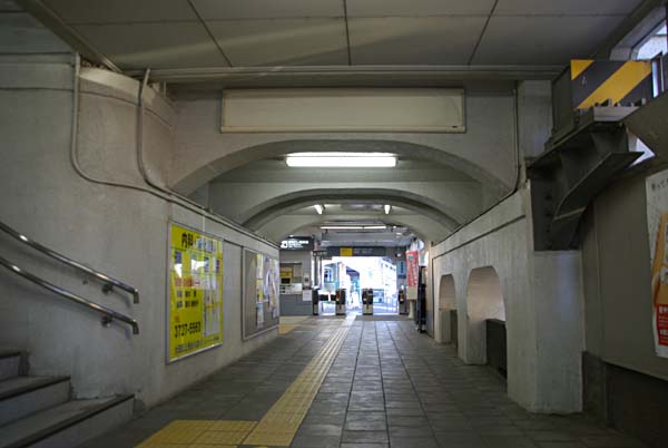ホーム端の階段を下ると曲線をタップリ使った上下線と改札口を結ぶコンコースが、 ルーツの池上電気鉄道を主張しているのです。そして、改札を抜けて右に曲がると、