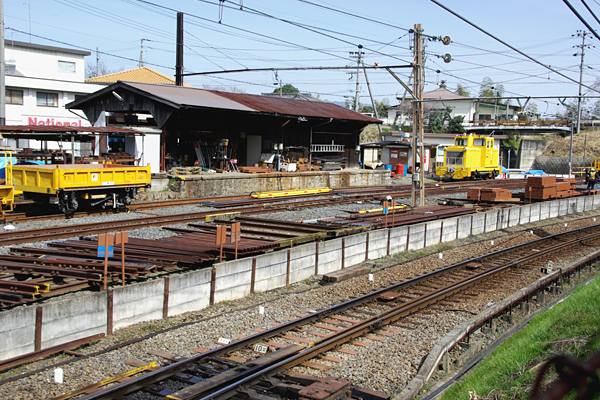 昔の貨物取り扱い施設のホームに側線と思われる、保線基地があるのでございます。