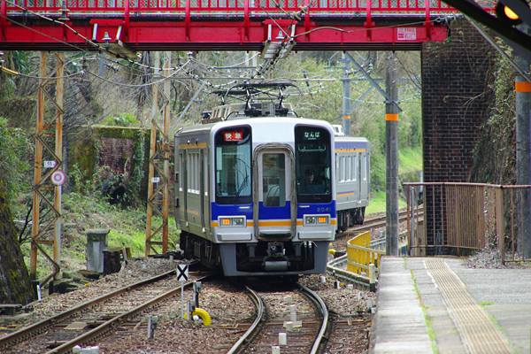 駄文を考えるの辛いんで今回の駅撮り探検団は、久し振りの紙芝居で御覧頂きます。 南海電鉄九度山駅、高野線は此処から終着極楽橋に向かって急勾配・カーヴが続く 本格的山岳路線となり、霊場高野山の玄関口の様な駅でございます。その九度山へ 山を下り入線するのは、2000系銀箱ズームカーの橋本以北は一様快速急行ですね。 このカット、ホームが右にタップリ写り込んでる、駅撮りの基本違反なんすけど、実は この駅撮りを撮る2週間前、高野線を乗り鉄で極楽橋まで行った時に九度山付近で 見たレンガ積みのアーチ橋が如何しても気になり、再訪して撮ったアングルなんです。