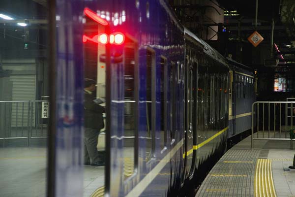先月アップした上野東京ライン開通で賑わう東京駅での駅撮り、時を僅かに遡り再び 御覧頂きます。後20分で23時になる頃、10番線ホームには既にブルーの寝台車が、 据え付けられておりました。生まれて初めて乗車するA寝台でございますが、ハネに 空きが無く、選択肢が無かったのです。ダッテ、ロネってたってカーテン一枚で寝台と 通路を隔てる開放式、それでも万札が一枚飛んじゃうですからねぇ、なんて愚痴って