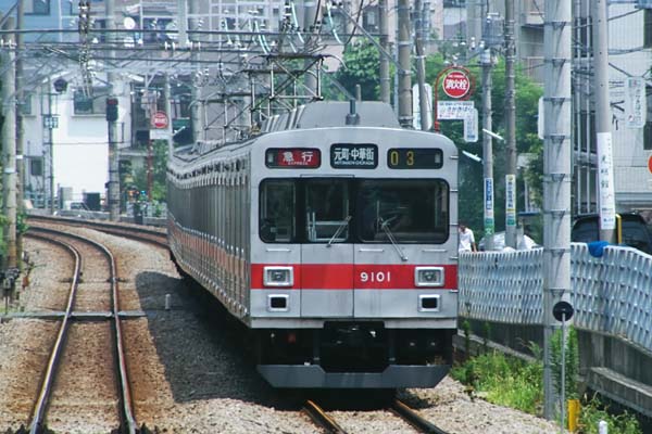 十年一昔とは良く言ったもんで、本当に世の中10年も経っちゃうと、イロイロと代わる ようでございます。モチロン我らが鉄道業界もカメラ業界もご他聞に漏れないのです。 ってな訳で、今回の駅撮り探検団は、10年前に訪れた東横線白楽を御笑覧頂ます。 横浜市の住宅密集地域に設置された白楽駅は、相対式2面のホームを持つ橋上駅、 大都市圏じゃ何処にでもありそうな中間駅なんですが、上りホームと構外の道路面が 同レベル(元からか嵩上げしたかは不明)となっており、写真のとおり構外から平面 移動のみで上り列車へ乗降可能な構造なのです。ホームに入って来たのは渋谷行き 各停の9000系、現在は5両編成に組み替えられ、大井町線で運用されておりますが、 10年前は、特急から各停まで活躍した、東横線主力車両でございました。ラッチの 外に掛けてある駅名表示板左側の半欠けコーポレートマークの下に「急行」に文字が 書いてあるのが、見えますか?略称の東急電鉄も10年前はまだ「東京急行」でした。