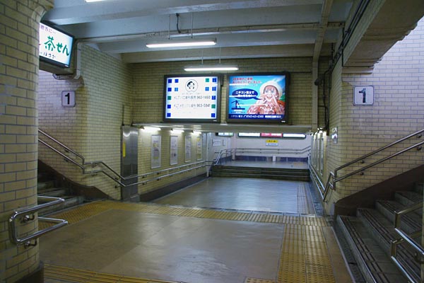 地下に目を向けると、丹那トンネルより先に開通した、各ホームを連絡する地下道も あり、壁面のタイルや階段上部梁にもさり気無く装飾が施され、カマ替えで全列車が 停車した、往時を偲ばせる品のある造りですね。そしてその地下道を通って5・6番線