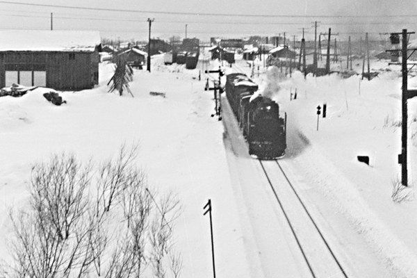 昔々、北海道に国鉄旭川鉄道管理局と言う組織があった頃の事でございます。毎年 冬になるのを待ちわび、授業をサボってバイトで捻くり出した路銀を懐に津軽海峡を 渡っておりました。函館から43レで早朝の札幌に到着、夜になるのを待って利尻に 乗車、早朝というか深夜というか3時過ぎに到着する、音威子府で天北線1番列車に 乗り換えて浜頓別に向うのが定番でございました。この天北線の一番列車721Dは、 浜頓別で分割されて北見枝幸に向う興浜北線の一番列車921Dを併結していました。 そして、キハ22単行の921Dに乗り北見枝幸まで行って、そまま折り返して目梨泊で 下車して9600貨物レを斜内山道で撮るのが、お約束の行動でございました。今では 天北線も興浜北線も駅も消えちまったけれど、その頃は線路を跨ぐ道路橋があり、 その橋から撮った、浜頓別を発車して音威子府方面に向う29675号機の貨物列車で ございます。シャープ補正しても判るピンボケ写真ではございますが、貨物レ後方に 懐かしの浜頓別駅構内が写っているんで、懐かしさに負けてアップしちゃいました。 天北線 浜頓別 1974-3 Photo by 団長 |