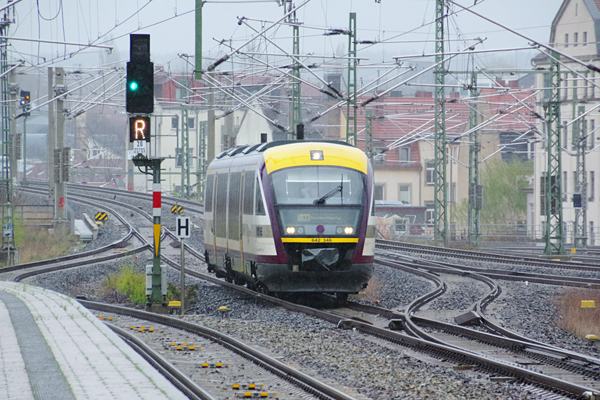 なんて愚痴ってると、乗車待ちのボンバルディア御謹製DBの最新型電車442型運用の RE列車ライプチッヒ行きが入ってきました。ところで駅撮りの基本、ホーム先端からの