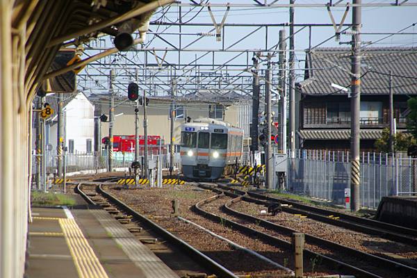 近鉄名古屋線とJR関西本線名古屋から四日市の先まで、離れても約1kmの距離で 平行しております。そんなもんで、線路がくっ付きゃ桑名の様な共同使用駅、離れりゃ 四日市みたいに頭に’近鉄’付けて其々を識別するけど、いずれの場合も勝ち組は、 近畿日本鉄道なのでございます。関西本線富田も西へ5分程歩いたの所に’近鉄’が 頭に付いた富田駅あり、かつて国鉄富田発着だった三岐鉄道も旅客列車の発着は、 今じゃ全て近鉄富田に代わちゃっております。しかし、キハ35や旧客が居なくっても、 銀箱313系バッカリでも、ジ〜サン鉄にゃ関西本線富田の方が、居心地善いのです。
