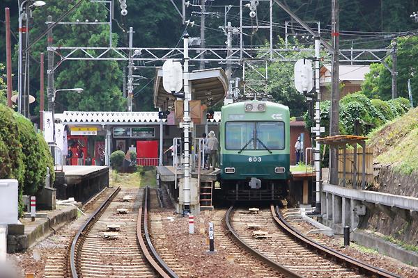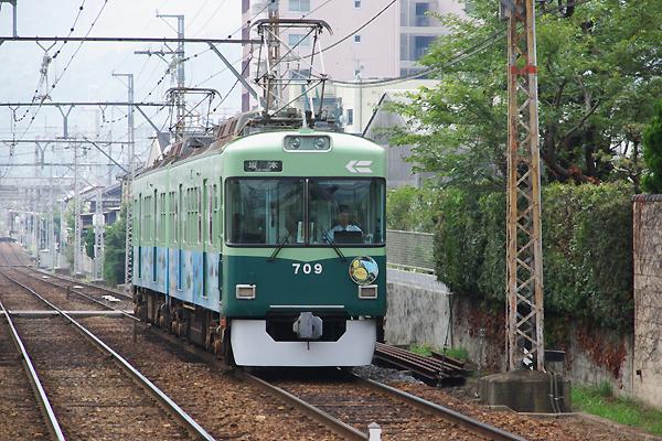 5枚目にして始めての駅撮り定番アングルは、同じく近江神宮上りホームから700形。 石山坂本線 近江神宮