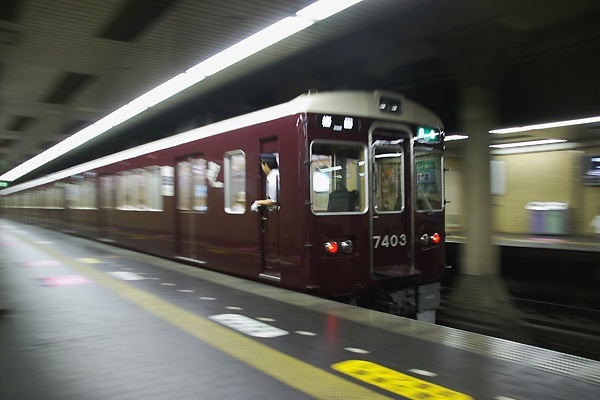 田原本から近鉄で京都に着き、地下鉄に乗り換え烏丸、更に阪急で一駅四条大宮に 到着致しました。恒例の乗って来た列車出発撮影は、地下駅の為ムリクリ流し撮りを トライしたけど情け無い結果になっちまいました。だけど、なんで竹田で乗換えないで 京都まで来ちゃったんだろ?だって、近鉄から地下鉄って結構辛い移動距離だもん。 阪急京都線 大宮