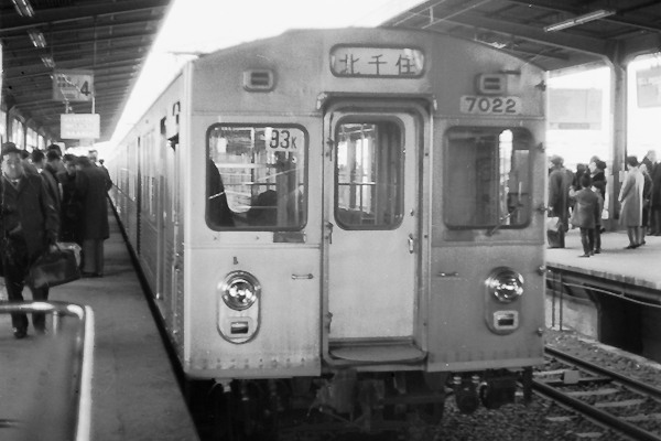 反対側の5番線に入って来たのは、東武が日比谷線乗り入れの為に泣く泣く新造した 18M 3ドア車の2000系中目黒行きでございます。乗り入れ車の仕様が、端から20M だったら私鉄103なんて言われた、8000系の存在はなくって2000系XXXX番台ってな 車両が、乗り入れ贅沢仕様を端折って大量に製造されていたかも知れませんね。