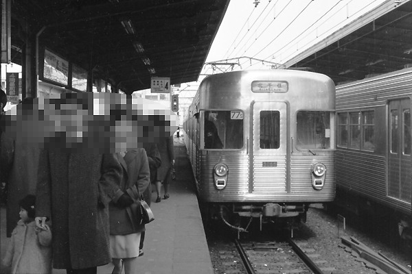 ここんとこデジカメ写真が続いちゃったんで、思鉄の看板に偽りあっちゃいけません。 そこで、半世紀ほど前の東武線北千住の駅撮りをアップ致しました。当時北千住にゃ 浅草寄りに上下線とも切欠ホームがあり、島式ホーム2面6線の配線となってました。 その切欠ホーム上り8番線に8000系各停浅草行きが、6000系快速退避の為停車中。 8000系の上り列車は、6番線で客扱い終了後に画面に写っているポイントを本線から 渡って待避線へ転線って記憶してんだけど、余り自信がないのでございます。下りの 退避列車は、その反対に退避後に客扱いしてた筈なんだけど、やっぱ記憶あやふや。