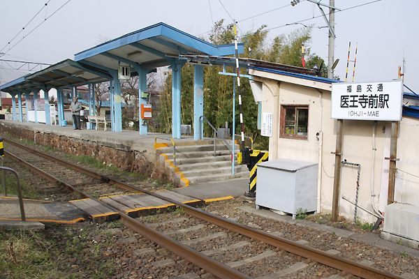 駅と列車のコラボってぇ事で、ラストは福島寄りの踏切からの一コマでございます。 福島交通飯坂線 医王寺前 2007-4 Photo by 団長 |