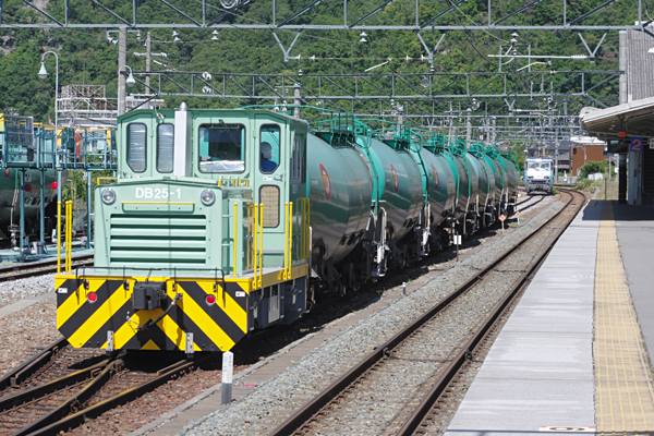 9月(2019年)初旬信州に行って参りました。前回アップした二本木もその時の撮影、 そして今回アップ坂城駅の油槽所専用線が、信州鉄旅目的の一つでございました。 上田から坂城に着いたのは10:04、ちょうど待機していた入換機が、朝到着の貨物レ から受けて専用線で油槽タンクに石油を移した空タキを引き上げ線へ移動するとこ、
