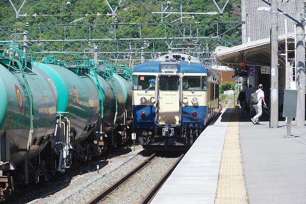 入換作業に見とれてるとスカ色の115系長野行き列車が到着、思鉄世代にや嬉しい 並びとなりました。コレでタンク車が黒タキなら最高、なんてぇのは贅沢過ぎますよ。