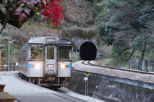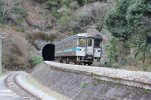 前回の駅撮りのコメで四国に行って来たんで、琴電長尾なんて事を申し上げました。 なので、当然今回も四国ネタでお届けの駅撮り探検団でございます。四国まで行って 此処で撮なきゃ駅撮り探検団の看板に傷が付いちゃうてんで、道無き道を倒木潜り 枝を払い行って参りましたよ、スイッチバックの秘境駅坪尻。駅に着いて直ぐ特急の 上り「南風」が通過していったけど、スイッチバック駅の撮影はヤッパローカル列車で ございます。特急通過から約15分、トンネルから姿を現したのは、1000形気動車の