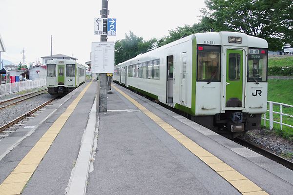 飯山線の駅の中じゃ一様秘境駅と呼ばれる足滝、もっともホーム端にある階段を下り 踏切渡って右側の法面を道なりに進めば、直ぐに駅直下にある国道に出られるんで、 列車からの見た目は秘境っぽいだけ、京葉線東京駅の方がヨッポド秘境駅なのです。