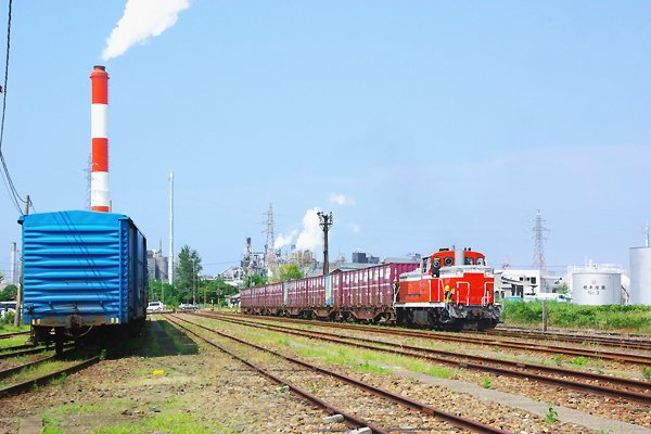 コロナ渦禁鉄10年前シリーズ第三弾は、2010年7月初旬日帰りで訪れたJR貨物焼島 でございます。記憶定かじゃ無いけれど、焼島に接続している北越製紙専用線からの ワムハチ(ワム80000)での出荷が、近い将来全てコキになっちゃうらしい、ってな事を 小耳に挟んだからだろうと思います。昼過ぎに駅に到着、暫くすると出発線待機中の コキX3+DE10が、側線のワムハチは置いたまんまで新潟貨タに出発していきました。