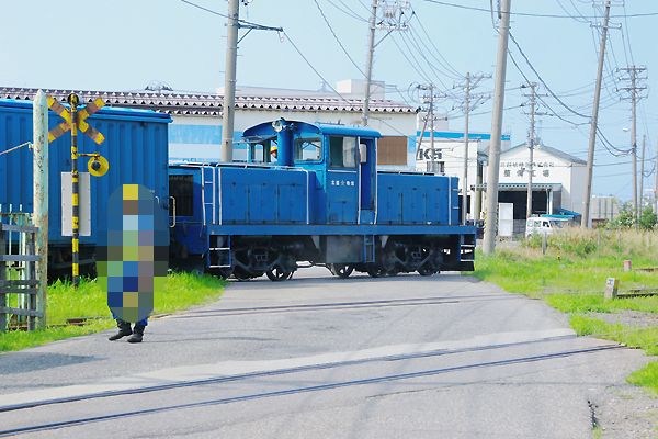ワムハチを専用線に押し込めてたDE10は、直ぐに構内運転で東新潟港方面に出発、 踏み切りの先あるコンテナ荷役線からコキを持って戻って来ました。その後コキから