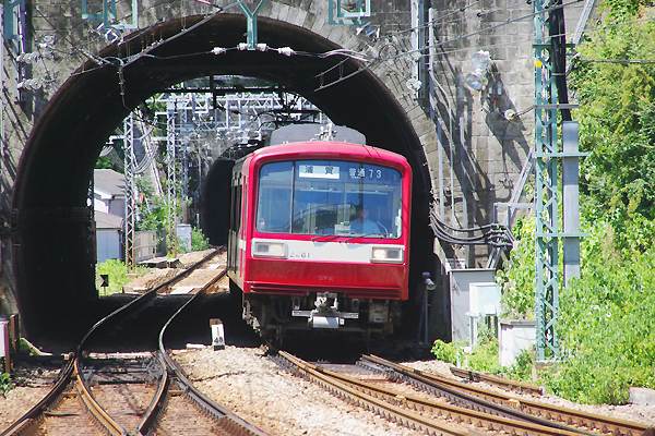 三浦半島を走る京急と言えば、短いトンネルが連続する沿線風景でございます。その 短いトンネルをぬけて逸見に進入して来るのは、浦賀行き普通列車の運用に入った、 4両編成の2461〜2464でございます。 京急本線 逸見 2010-9