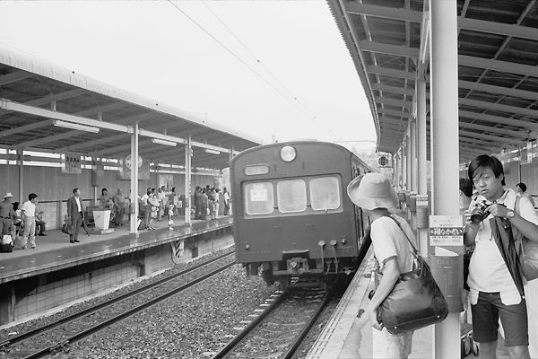 外房線の大網駅ホームは相対式2面、その下り2番線に進入して来たは、モノクロも ぶどう色2号が懐かしい、旧型国電73系のクハ79でございましょうか。所属の車庫は、 当然「千ツヌ」日本国有鉄道千葉鉄道管理局津田沼電車区なのです。国鉄時代から 鉄に堕ちちまった思鉄だもん、間違ったて’ラシ’なんて言わねぇぞ。 外房線 大網 1972-8 Photo by 松原の親方 |