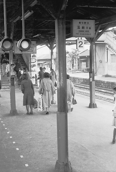 今回は名誉団長の島田氏が、1976年1月に九州で乗り鉄した時、停車駅の車窓から スナップした銀塩ネガをコマ順(駅撮りコマのみ)にアップ致しました。最初は熊本市電 2系統田崎橋行き1350形です。電停名判んなかったけど、背景から熊本駅前と判明。 熊本市電 熊本駅前