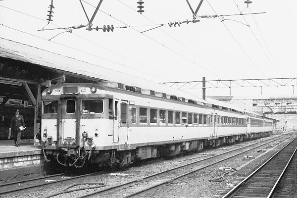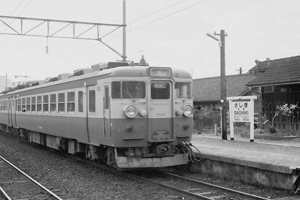 山野線経由で水俣に出た名誉団長鉄旅、最後のコマに写っていたのは、鹿児島本線 佐敷駅1番線を通過中と思われる475系でございました。この列車急行の幕表示から 「かいもん」と思ったけど、貫通路の列車番号表示は、505Mとしか読めないのですよ。 電車列車の急行「かいもん」は100番台なんで、謎の急行列車なのです。 鹿児島本線 佐敷 1976-1 Photo by 名誉団長 |