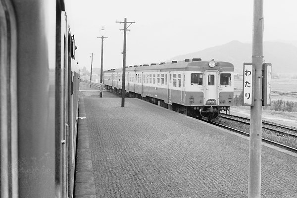 その次には八代のホームで撮った485系特急有明なんですが、昔HM探検団でアップ したんで、カットでございます。その八代からは肥薩線へ乗り換、最初のコマは渡での 交換シーンでございました。対向車は、キハ25+キハ25+10系気動車の3連の様です。 肥薩線 渡