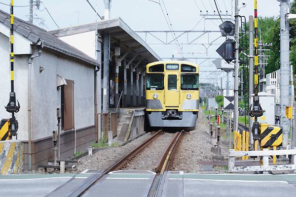 たまにゃ昭和の香しい抵抗制御鋼体車が、撮りたい。でも、何処行きゃ走ってんの? そうだ、西武の新101系だ、ならば多摩湖線ってんで、ノコノコ歩って新小平からやって 参りました青梅街道の踏切んとこに。こっから列車撮るんなら、踏切渡ってホームとは 反対側の方がベターでございます。単線も運転間隔10〜12ヘッドの多摩湖線なんで、 どうやってナンテ考える間も無く警報機が、鳴って下り列車接近して来ました。しかし、 やって来たのは新101系にあらず、4両編成ワンマン仕様に改造された9000系でした。