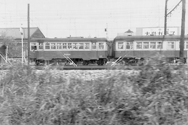 今回は増結2号車カレチ松原団員が、残してくれたネガから蔵出しスキャンでお届けの 豊鉄花田操車場駅撮りでございます。もっとも、花田操車場ってナニ、鉄分豊富な方も 初耳だよてぇ答えが殆どじゃないでしょうか。アッシもアップするんで調べたら、豊鉄の 新豊橋〜柳生橋間に花田操車場てぇ貨物専用駅が、在ったってぇ事を知ったんです。 その花田操車場を通過する豊鉄渥美線列車と運良く並走状態となった、「ひので号」の 車窓からスナップしたのが、今回アップの写真でございます。当時の私鉄なら極普通に 見られた、車長も車幅もアンバランスな2両編成の豊鉄電車、先頭は元三河鉄道の 気動車だったク2280形2282号車、後が元西武600V多摩湖線用モハ101形モ1300形 1302号車、私鉄好きにゃ堪らない怪しげな車両同士でございます。それから、写真は 小っこいんだけど、ク2282運転席の窓から運転士が、タブレットキャリアー出してんの 分かりますか?ならば、ク2282の運転席のとこに立ってんのが下り出発信号ですね。