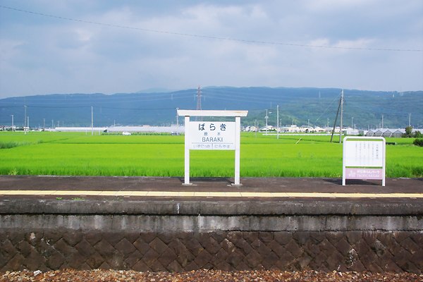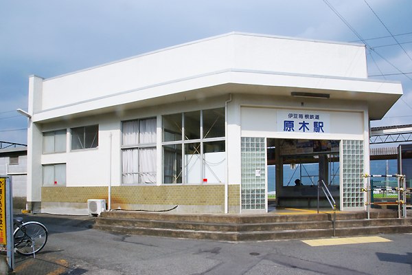 お次は原木下車の目的、駅舎を構外に出てスナップいたします。ジ〜サン鉄大好きの 木造駅舎は駿豆線にゃございませんが、よくある駅周辺たぁマルッキシ場違いな珍妙 奇天烈な造りの駅舎とは大違い、シンプルだけど個性的で飽きのこない造りなのです。