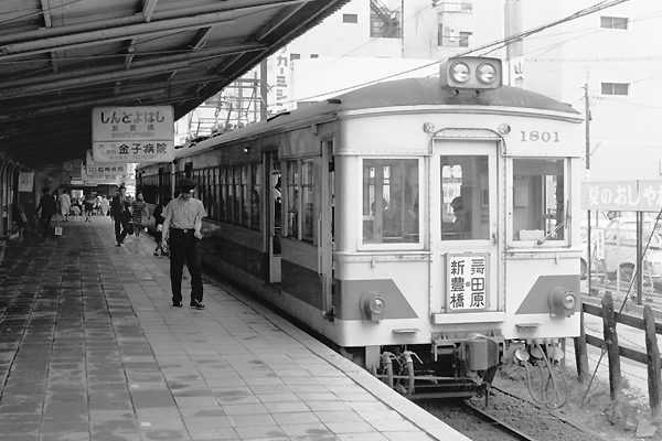 国鉄に名鉄と続けた豊橋の駅撮りでございますが、未だ何かが足らないぞっと思った 駅撮りファンの皆様は流石です。ってな事で、駅名の頭にゃ「新」が付いちゃいるけど、 豊鉄の駅撮りもアップでございます。新豊橋⇔三河田原のサボを挿して片面ホームに 停まっているモ1800形、元を糺せば元超特急「あさひ号」としても有名だった、愛電の 名車デハ3300形なんですよ。そして、モ1801の相方はどんな車両かってぇと、こんな