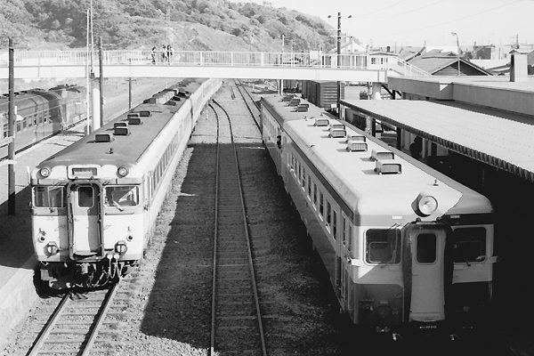 そして、根室本線列車3本が出発した後に側線でお昼寝中だったキハ22が、DMH17を 始動して3番線に転線、当駅13:50発北進行き白糠線下り533Dとなりました。当時から 赤字ローカル線として有名だった白糠線は、1983年の秋に国鉄解体を待たず廃線と なっちゃいました。しかし、昔の写真見る度に思うのは、如何して態々国鉄を島ごとに 分けて解体しちゃったんだろう?ホント可哀そうなJR北海道でございます。 根室本線 白糠 1973-10 Photo by 松原の親方 |