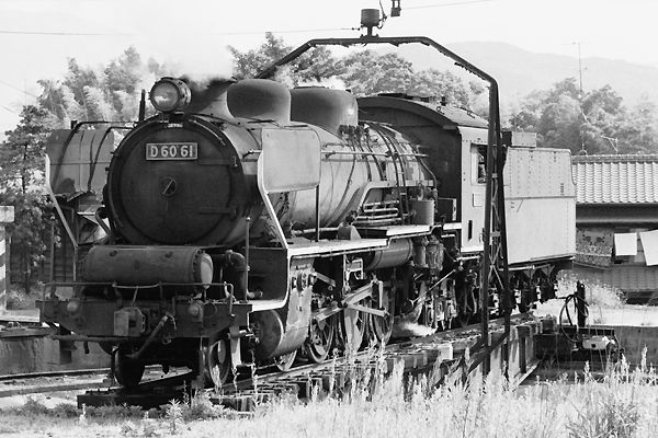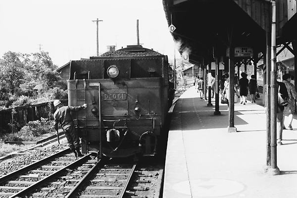 鹿児島本線原田駅をハラダと読むのは、九州在住以外の非鉄な方、ハルダと読めば 鉄な方でございます。そして、アッシなんかにとっちゃ筑豊本線終着駅原田なのです。 その原田駅に蒸気機関車が煙を上げていた、国鉄時代の駅撮りを松原団員撮影の 銀塩写真でアップでございます。筑豊本線発着ホームは、鹿児島本線に乗り入れる 列車以外、昔も今も1番線東側の切欠0番線ホームなんだけど、昔と今の決定的な 違いは、着回し線の存在なのです。なので、先ずは0番線到着後旧客列車から離れ、 着回し中の「若」所属した最後のカマとなったD60 61号機の駅撮りからスタートです。