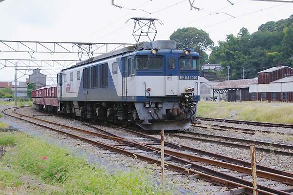 今やごく一部の鉄の間では、お宝となった矢橋工業私有貨車ホキ9500空返貨物レを 牽いて美濃赤坂に到着した、「愛」EF64 1010号機でございます。美濃赤坂から先は、 西濃鉄道の三菱製DD40型にバトンタッチしてホキ9500は、乙女坂まで運ばれるます。 東海道本線美濃赤坂支線 美濃赤坂 2013-10