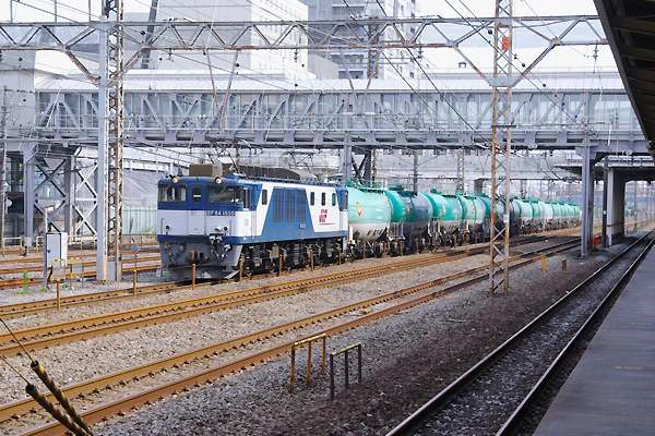 安直コンテンツ’もう直ぐ無くなっちゃうぞ’もう無くなっちゃった’シリーズでアップした EF64基本番台、今回は南武支線以外の駅撮りEF64 1000番台をアップです。先ずは 東海道貨物上り本線を通過する、タキ1000型を連ねた「愛」1035号機でございます。 東海道本線線 鶴見 2011-7