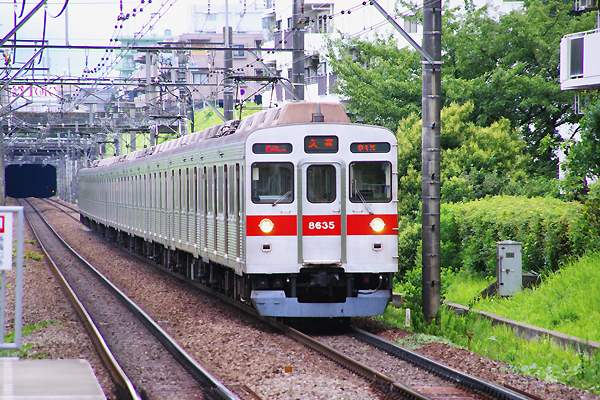 溝の口より下り方面隣駅、梶ヶ谷3・4番ホーム下り側ホーム端も人気の好ポイントで ございますが、此方は1・2番線ホーム上り側ホーム端も宜しいかと。アップの画像は、 トンネルを抜けて駅に進入する、今年(2021年)の夏で力尽きた8628Fでございます。 東急田園都市線 梶ヶ谷 2010-2