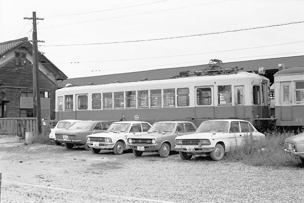 今回も前回同様松原物故団員が、残してくれた銀塩蔵出しスキャンでお届けしちゃう 駅撮り探検団でございます。国鉄時代の小松駅には北陸本線の他にローカル私鉄が 2路線発着しておりました。其の内の1本が小松駅裏側に北陸本線と垂直にホームを 接していた北陸鉄道小松線でございました。だいぶ前にも一回アップした北鉄小松を 再度駅撮りで取り上げたのは、駅撮りした当時在籍していた全車両が写ってたんで、 そのご紹介でもと思った次第です。全車両って言ったって、路線長6kmにも満たない 小松線の所属車両は、1971年に廃止になった北鉄金石線から移動してきた、3000形 5両がその全てございました。その5両先ずは、ホーム横の側線で昼寝中の3001号。