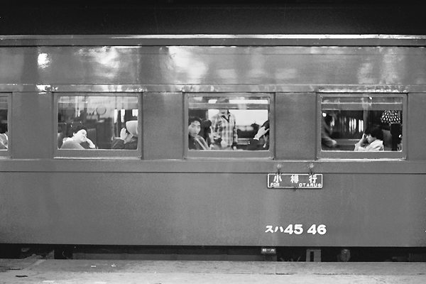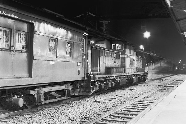 釧路発19:07終着小樽着06;52所要11時間45分、対面の人と膝が付っいちゃう、狭い シートピッチの背ずり直角ボックスシートに座って約半日の鉄旅は、エコノミー症候群 必至でございました。ってな事は無く、半分以上の乗客は地元の通勤通学客の人々、 1時間も経たない内にワンボックス一人か二人になっちゃう、ビンボ〜鉄にゃ最適な 一夜の宿となったんです。最もそんな乗車効率だったんで、荷物・郵便・新聞輸送の トラック輸送シフト化が、普通列車運転区間ブツ切りの一因になったんですね。 根室本線 釧路 1973-10 Photo by 松原の親方 |