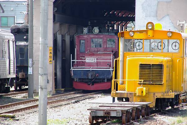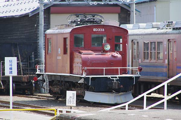 そして、大鰐線にゃ一回り小さいE22 1号機。信濃鉄道を振り出しに省→西武→近江 →一畑と流れ津軽を終の棲家とした流浪の古典機ございます。定期の仕業は無くとも 弘南鉄道の2機のカマは、嬉しい事に冬季の排雪列車運行の為に車籍がございます。 弘南鉄道 大鰐線 津軽大沢 2009-5