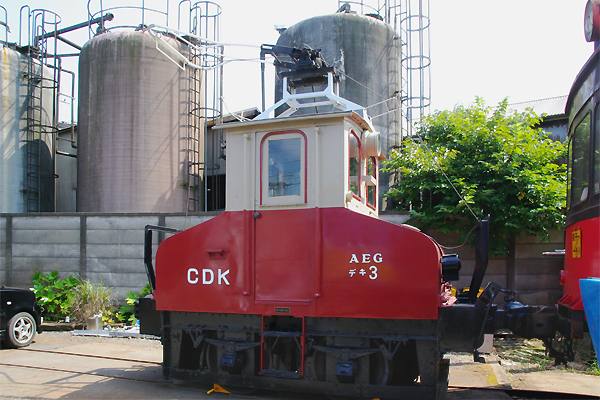 最後は1067mm軌間最小の電気機関車、ドイツアルゲマイネ制銚子電鉄のアイドル デキ3でございます。現在は車検切れで本線走行不可だけど、昔は貨物列車どころか 客車列車の頭に付いてたんです。 銚子電鉄 仲ノ町 2010-8 Photo by 松原の親方 |