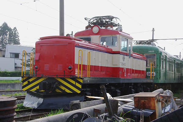 同じく上州お宝ヴィンテージ機関車、昭和越えた大正時代の輸入機独ジーメンス制の 上信電鉄のデキ1型の3号機(上4)1号機でございます。数年前まで工臨やイベントで 時折稼働しておりましたが、ここんとこ動きが無いなのです。車籍はあるけど、チョット 行く末不安なデキ1・3でございます。 上信電鉄 下仁田 2006-3