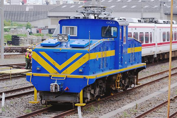 EL120型電気機関車の新造によって残念ながら廃車となった、大江駅に常駐していた デキ600型603号機でございます。このデキ600型は、伊豆箱根鉄道駿豆線ED30型と 同じ東芝戦時標準設計型電気機関車なんですよ。 名鉄 常滑線 大江 2008-5