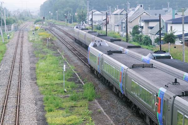 十勝鉄道のDE10が走り去って暫くすると帯広方面からキハ285系特急「おおぞら」が、 2番線に進入交換待ちで運転停車いたしました。さぁて、交換相手の列車は如何にと