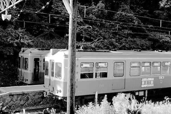 先日YAHOOを見てたら。新島々駅の向いっ側に約30年前に面も元に復元して建て、 旧島々駅本屋が、建前上の理由老巧化の為に解体されっちゃった、ってな情けない ニュースが載っておりました。そんな訳で駅撮り探検団得意の肖りアップでお届けは、 松本電鉄上高地線島々駅でございます。アルピコ交通なんてカタカナはいけません。 先ずは1面2線の島式ホーム停車中の750V時代の主力車モハ10形1011号車、一見 初期高性能車見えちゃうけど、其れは箱だけで中身はバリバリの吊り掛け旧型車で ございました。隣もモハ10形なんけど、妻面だけじゃ号車番号の方は、不明なのです。